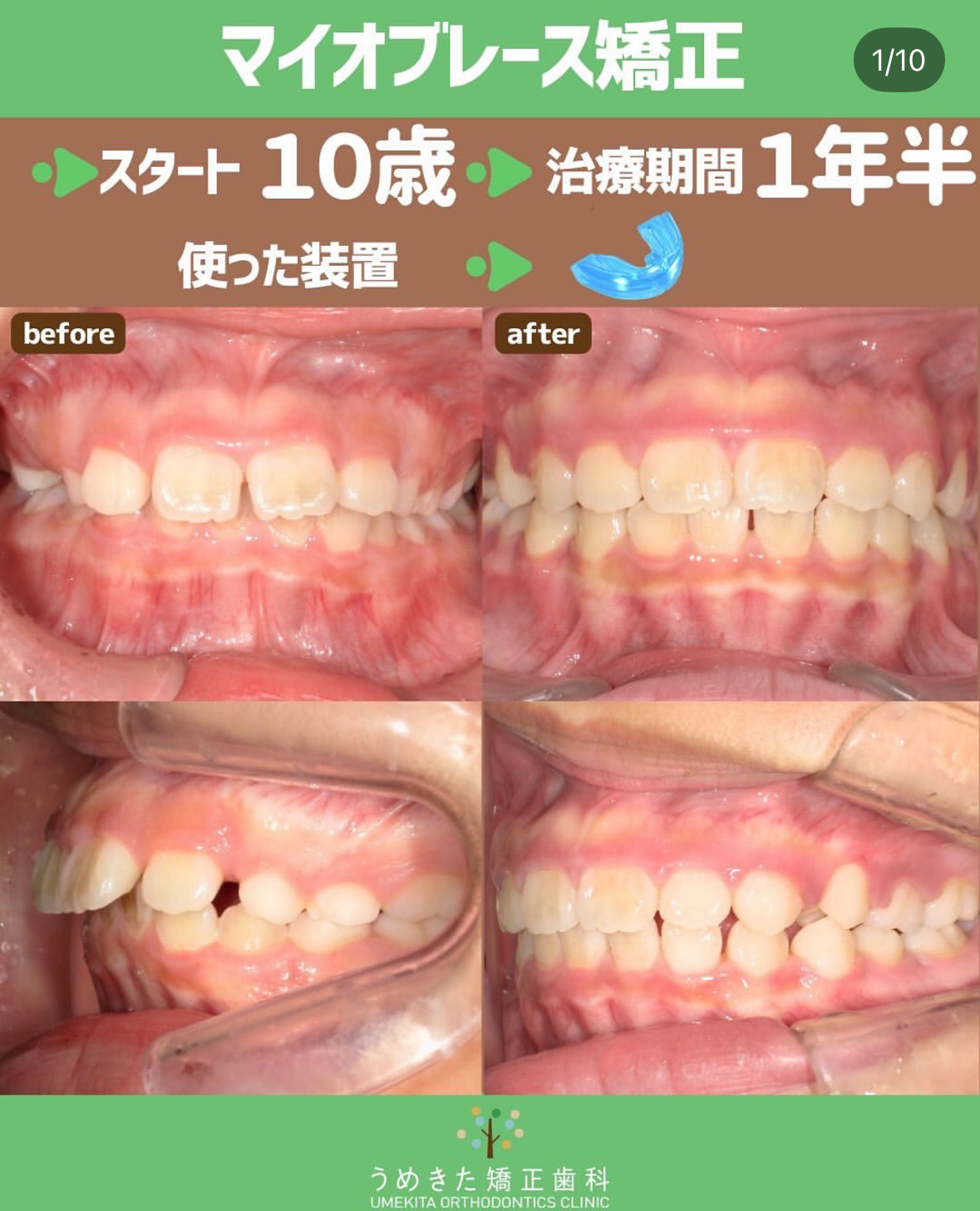 始めるきっかけ 始めるきっかけ 6歳スタートの女の子です。1歳から本院でクリーニングに通われていて、下の前歯が永久歯に生え変わったタイミングでがたつきが出たため来院されました。 本人もやる気満々でマイオブレース矯正(myobrace)をスタートしました。 治療前 / 現在 治療前 / 現在 治療内容 スタートしてからもモチベーション高く、アクティビティもマウ …