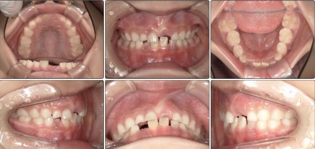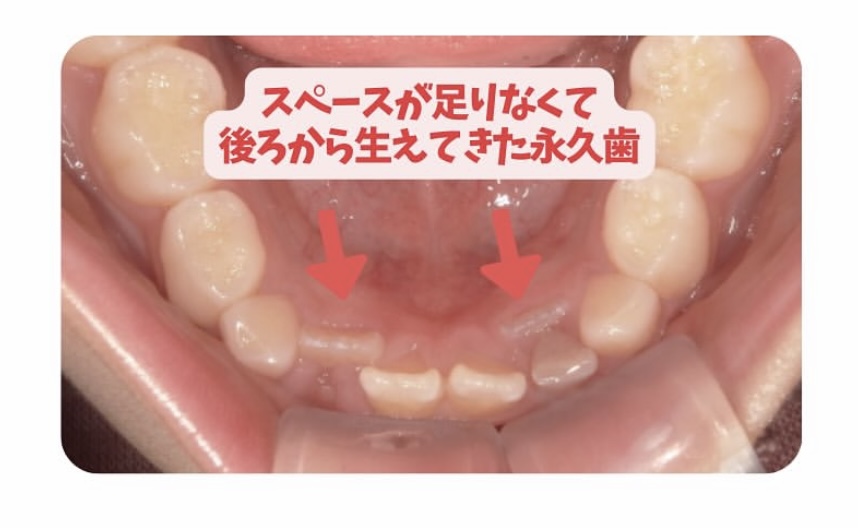 1歳から本院でクリーニングに通われていて、下の前歯が永久歯に生え変わったタイミングでがたつきが出たため来院されました。