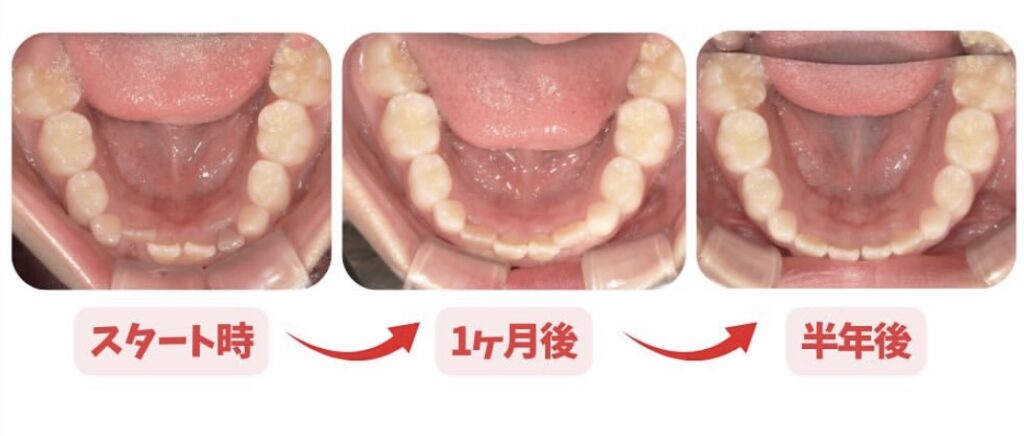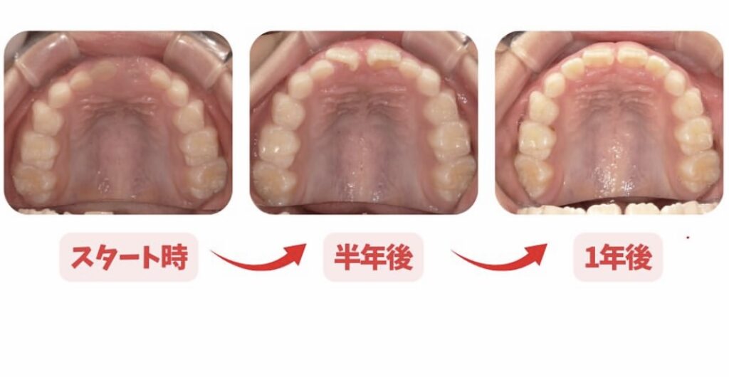 上顎が大きくなるには骨の成長や舌の力が必要なので少し変化に時間がかかります。