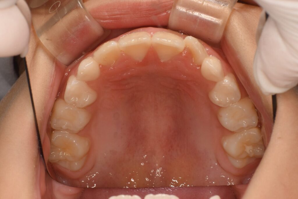 患者さん自身は今は気になっていないため、一旦治療は終了していますが、希望があればマイオブレース(myobrace)治療にて改善も可能です。