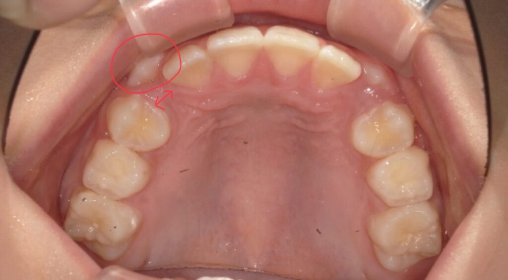 歯並びも順調に生え変わりましたが、左側の後ろから2番目の歯は少し歪んだ方向から生えてきました。