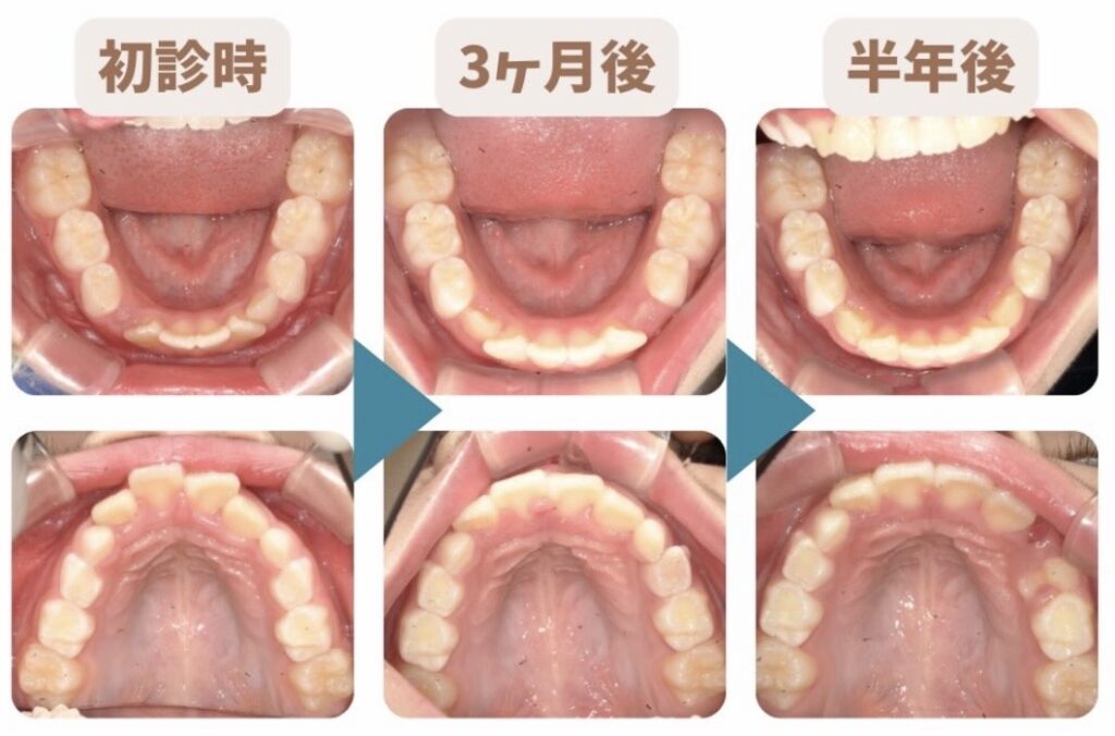 にはアクティビティとマウスピースの装着のみで下の歯のがたつきが少なくなり上顎もV字歯列が改善されていました♪